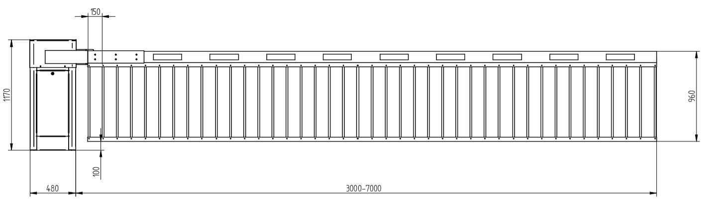Detailní informace o produktu Průmyslová závora RB53 s ramenem s jednoduchými záclonkami