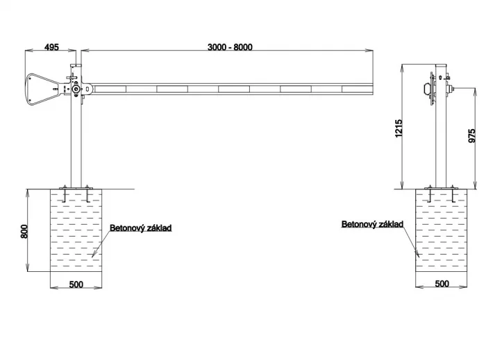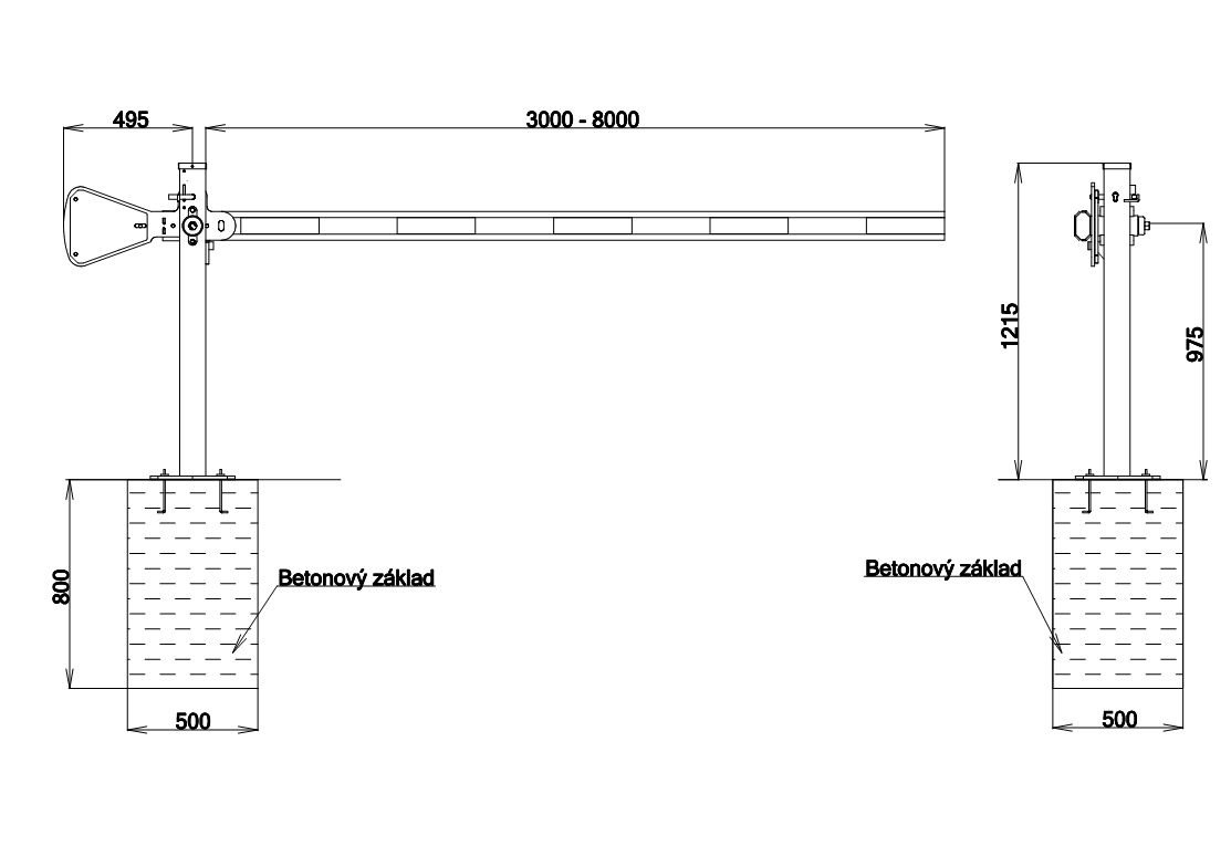 Ručně ovládaná závora pro místa s nízkou intenzitou provozu pro maximální délku 8 metrů.