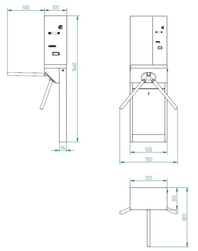 Turniket typu „tripod“ s integrovaným mincovním automatem a bankovním terminálem pro rychlý a pohodlný přístup na toalety a jiná zařízení. Integrovaná funkce antipanik a volný odchod.