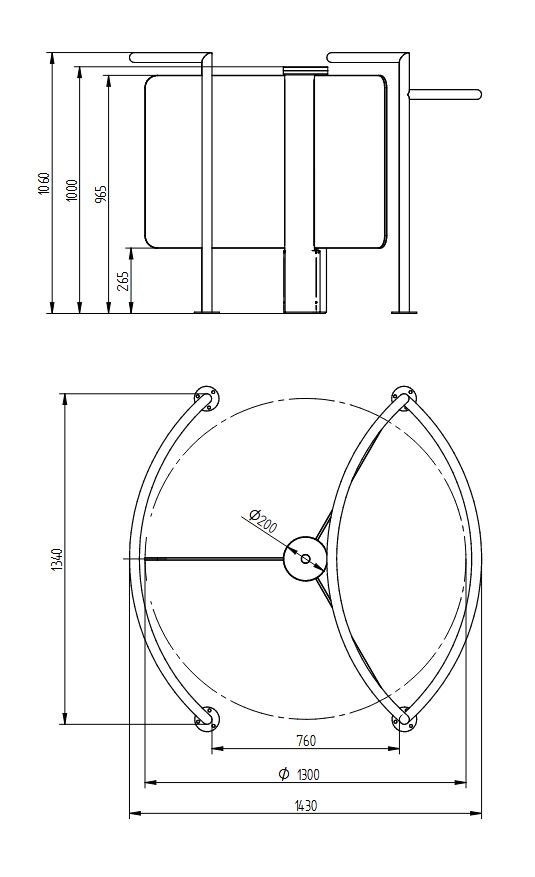 - Motorová jednotka, kterou tvoří BLDC motor s planetovou převodovkou a brzdou, která zajišťuje okamžité a přesné zastavení turniketu.