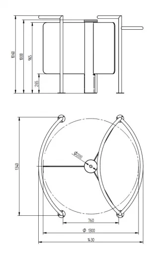 Rotační turniket pro přístup osob do vyhrazeného prostoru včetně reprezentačních objektů. Nerezová konstrukce s motorovým ovládáním a a se skleněnými křídly, včetně vymezovacího zábradlí.