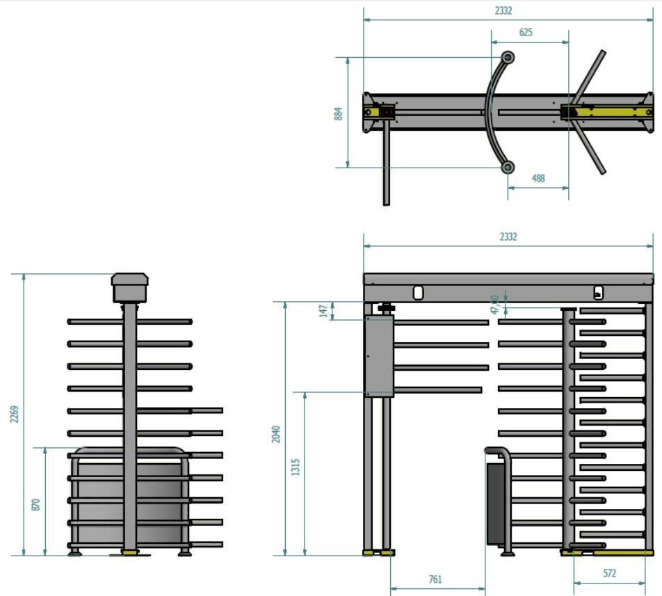 | T 2500DPT- IP | Plnorozměrný turniket s motorovou brankou pro průchod kola , nerezové provedení + lak | 437 510 Kč |