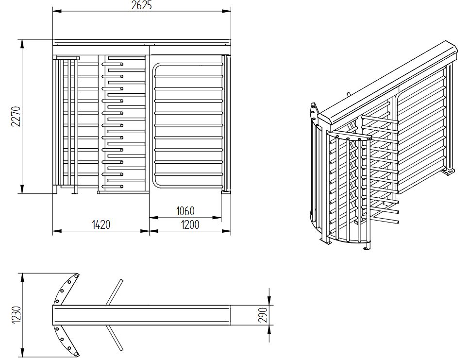 Dvojitý plnorozměrný turniket pro rychlejší odbavení osob či oddělený přístup pro ke zefektivnění průchodů