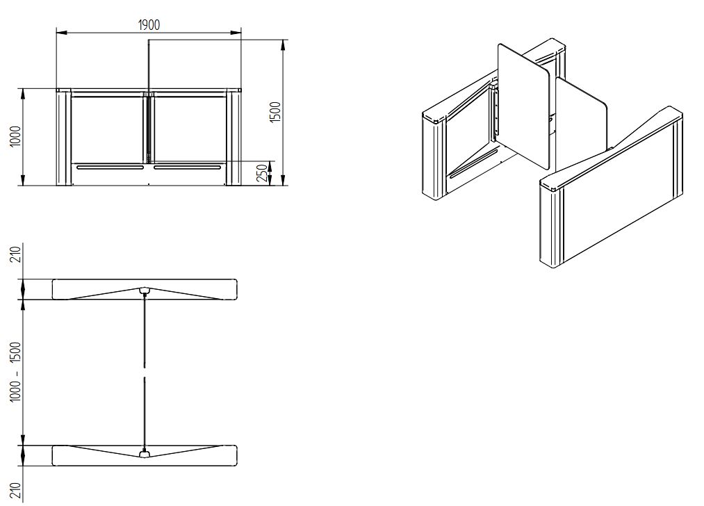 Speedgate DMS 128 XL je vhodný pro jednosměrnou, nebo obousměrnou kontrolu pohybu osob s požadavkem širokého průchodu až 1500 mm a vysokého stupně zabezpečení.