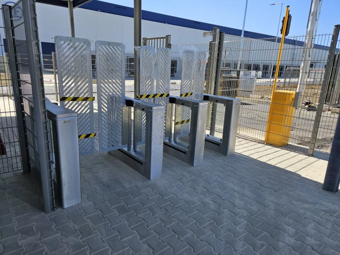 Speedgate DMS 128 s otočnými křídly vhodný pro kontrolu pohybu osob. Robustní konstrukce a možnost použití zábran z duralu umožňují jejich použití i v průmyslovém prostředí.