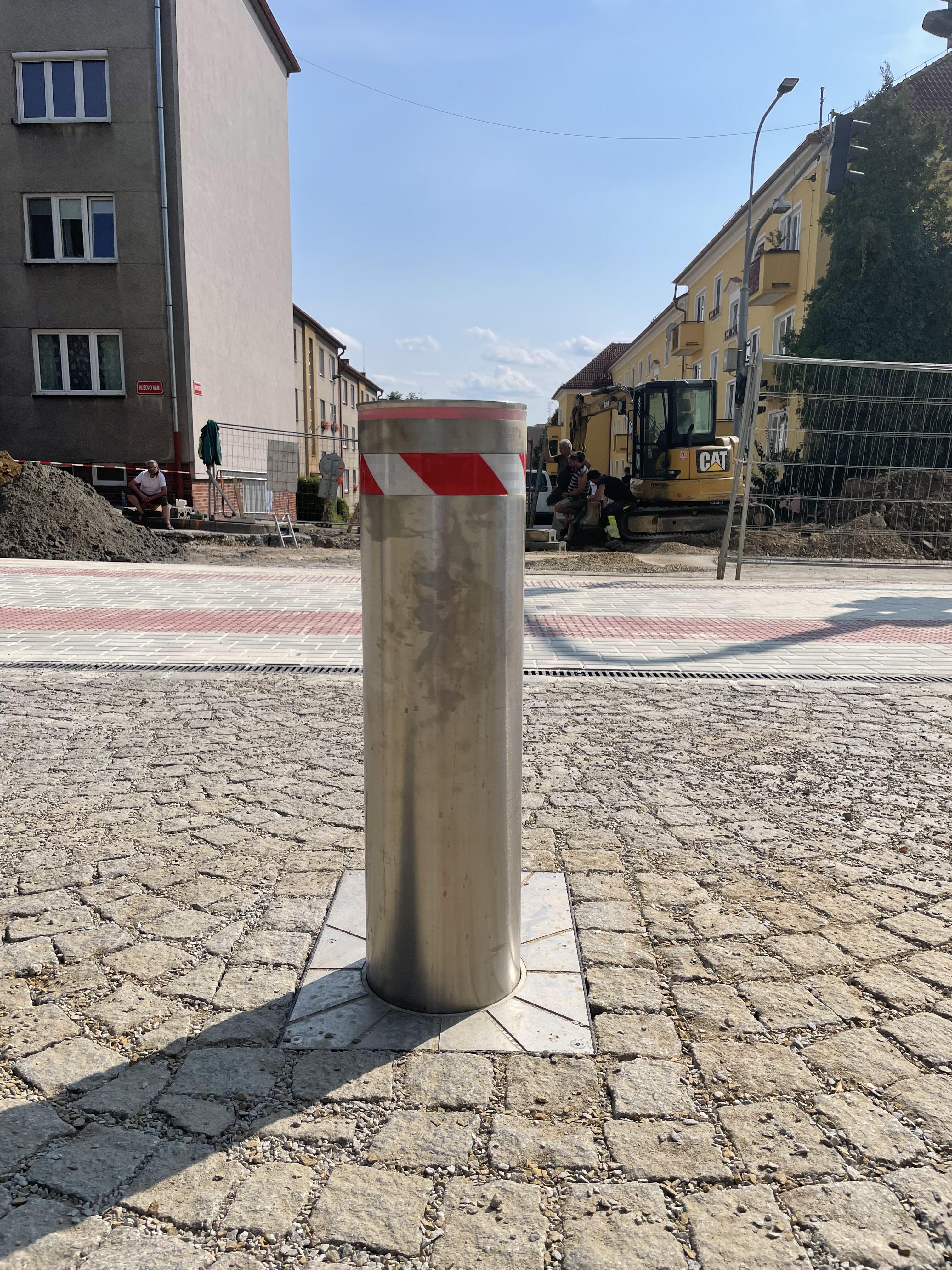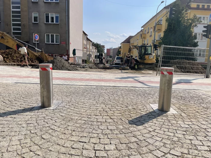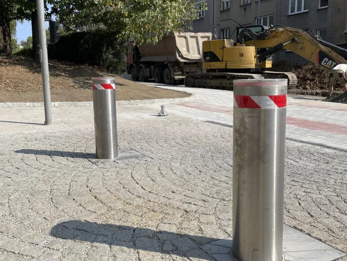 Výsuvné sloupky vzdáleně řízené časovačem u základní školy v Písku
