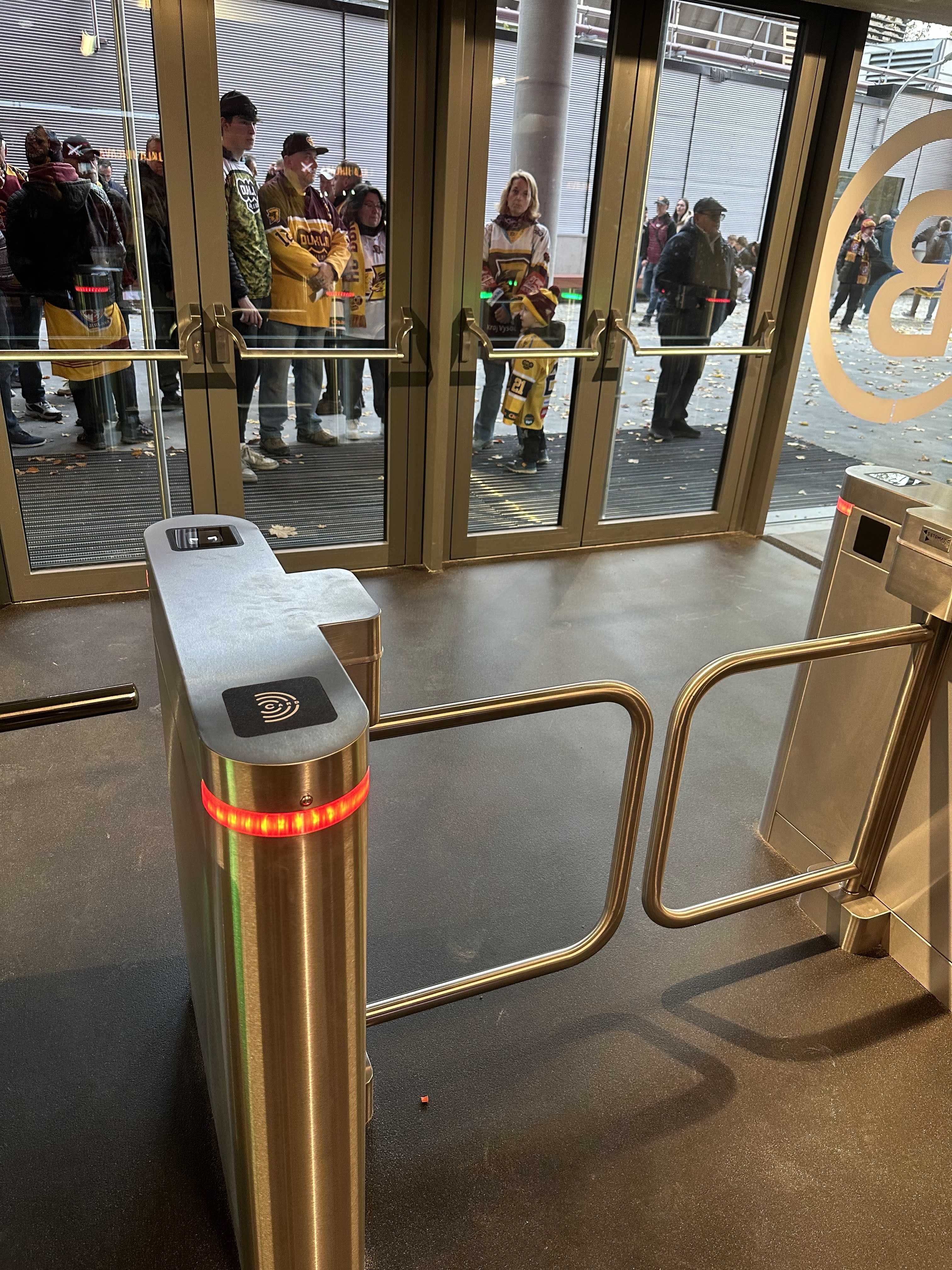Desítky turniketů do několika různých sektorových vstupů a k nim integrované skenovací zařízení operující v rámci interního přístupového systému na vstupenky a permanentky. V říjnu 2025 se fanouškům jihlavské Dukly otevřela zbrusu nová hokejová Horácká aréna a od té doby tu naše turnikety Detomatic zajišťují plynulý vstup až pro 5,5 tisíc lidí na každý zápas. A my samotní jsme byli u prvního testu v ostrém provozu během zápasu Jihlava – Zlín.