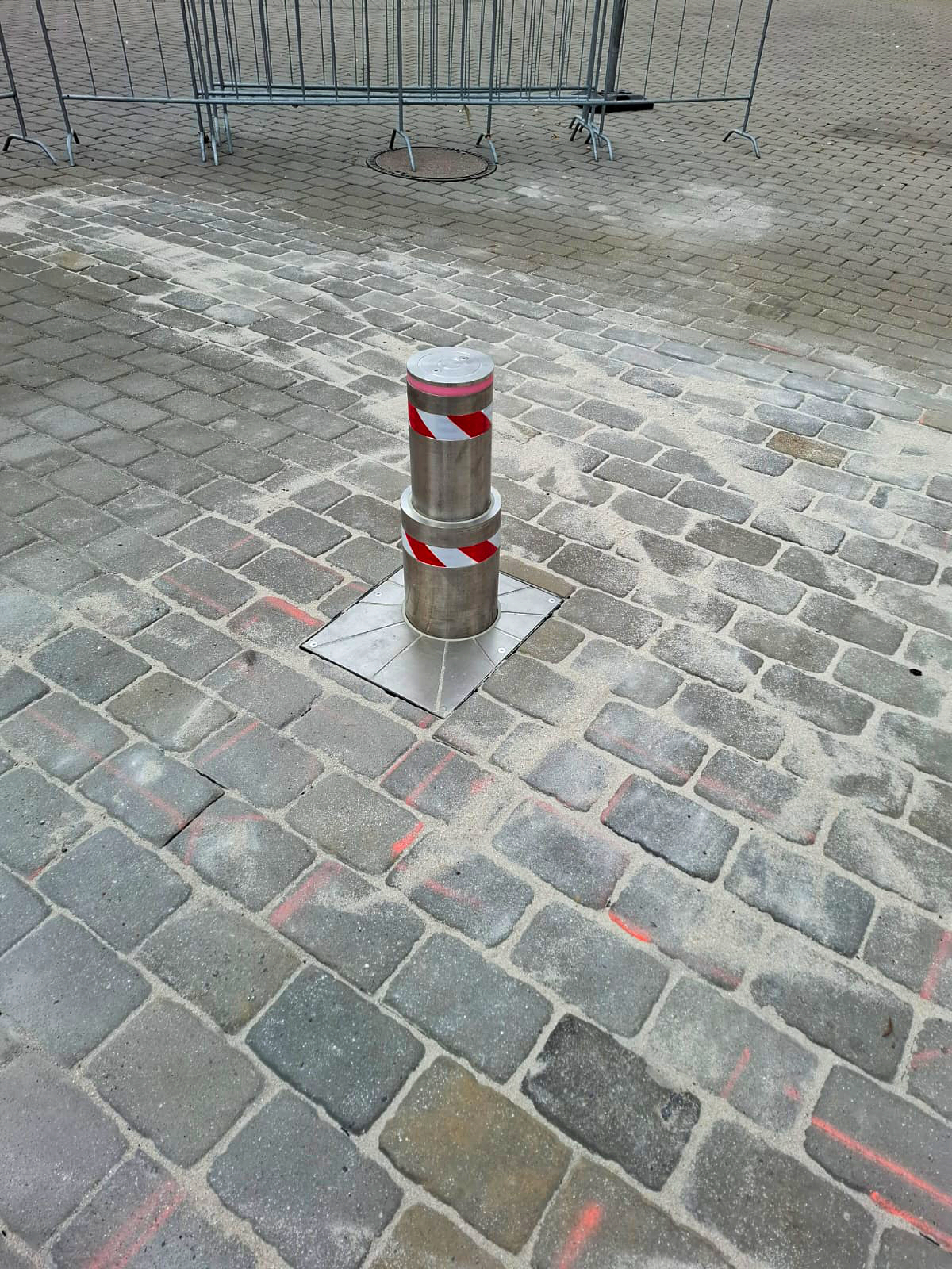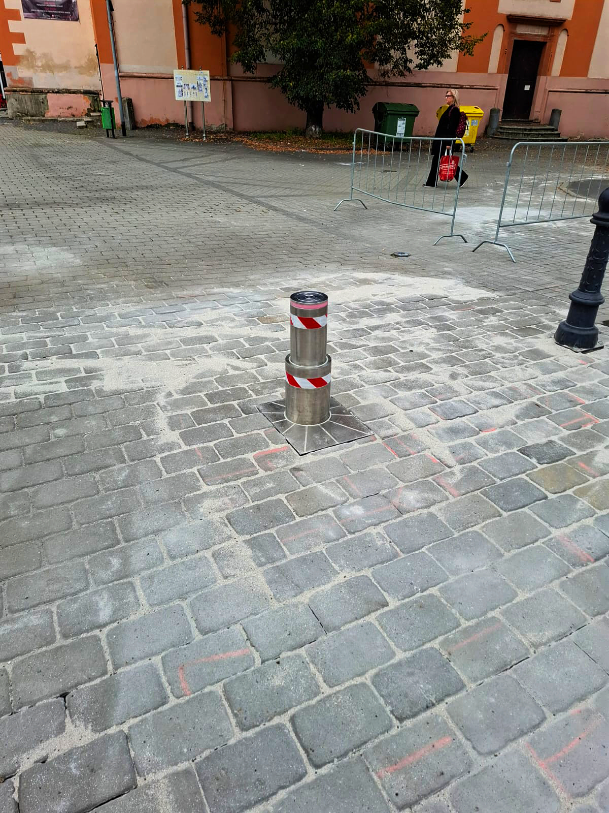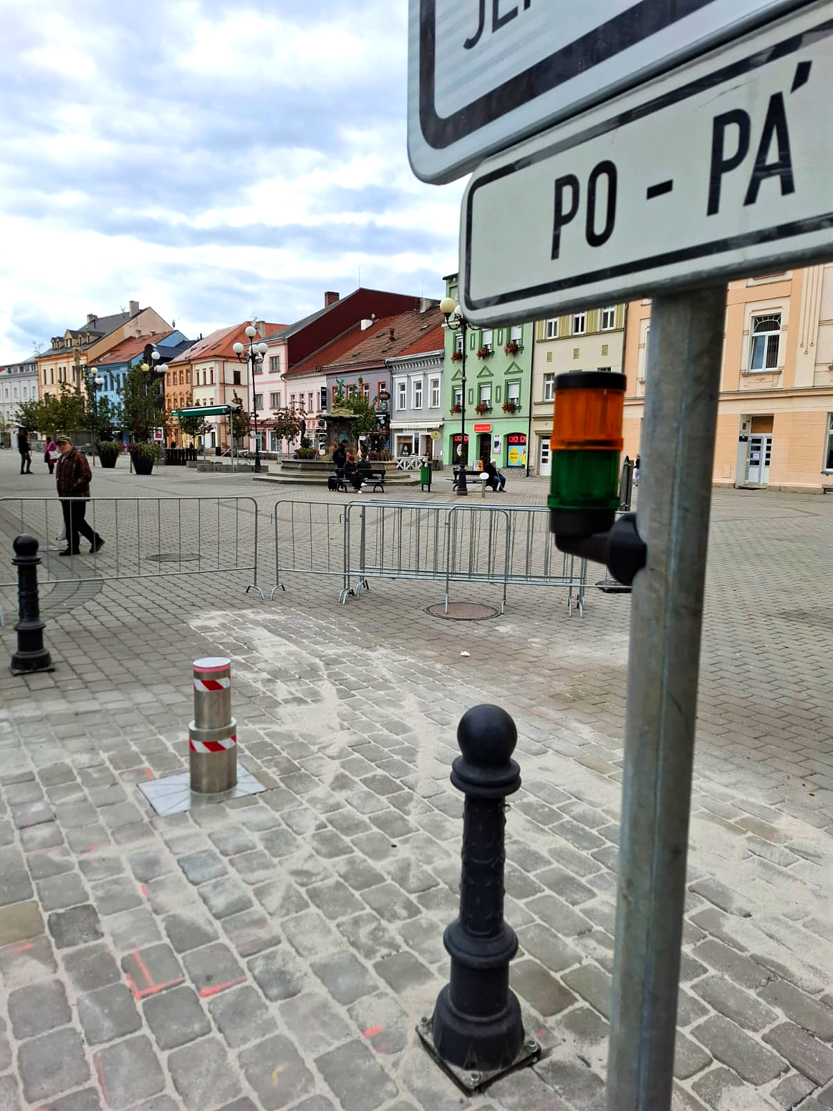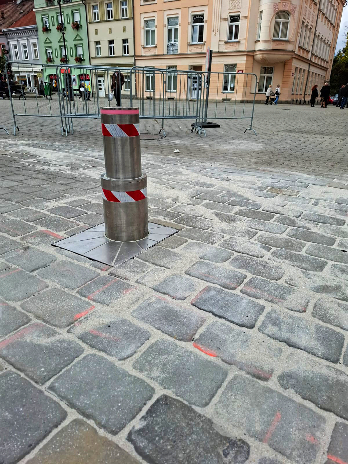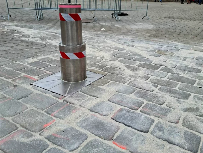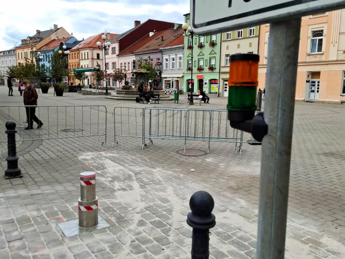 Teleskopický výsuvný sloup na Starém náměstí v Sokolově