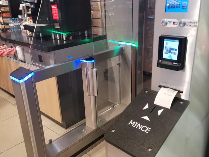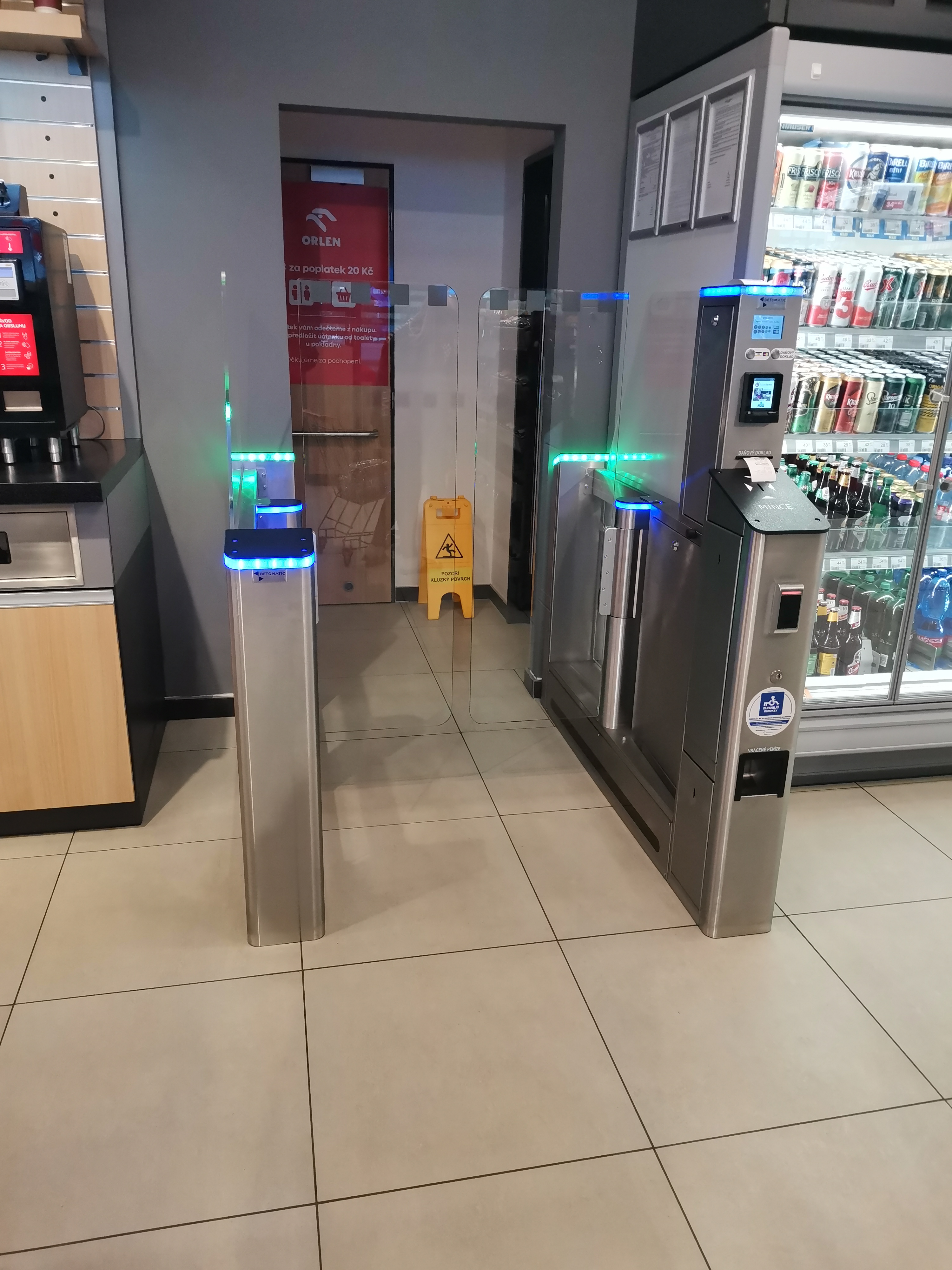 Vstupní turniket na toalety na čerpací stanici ORLEN Vystrkov